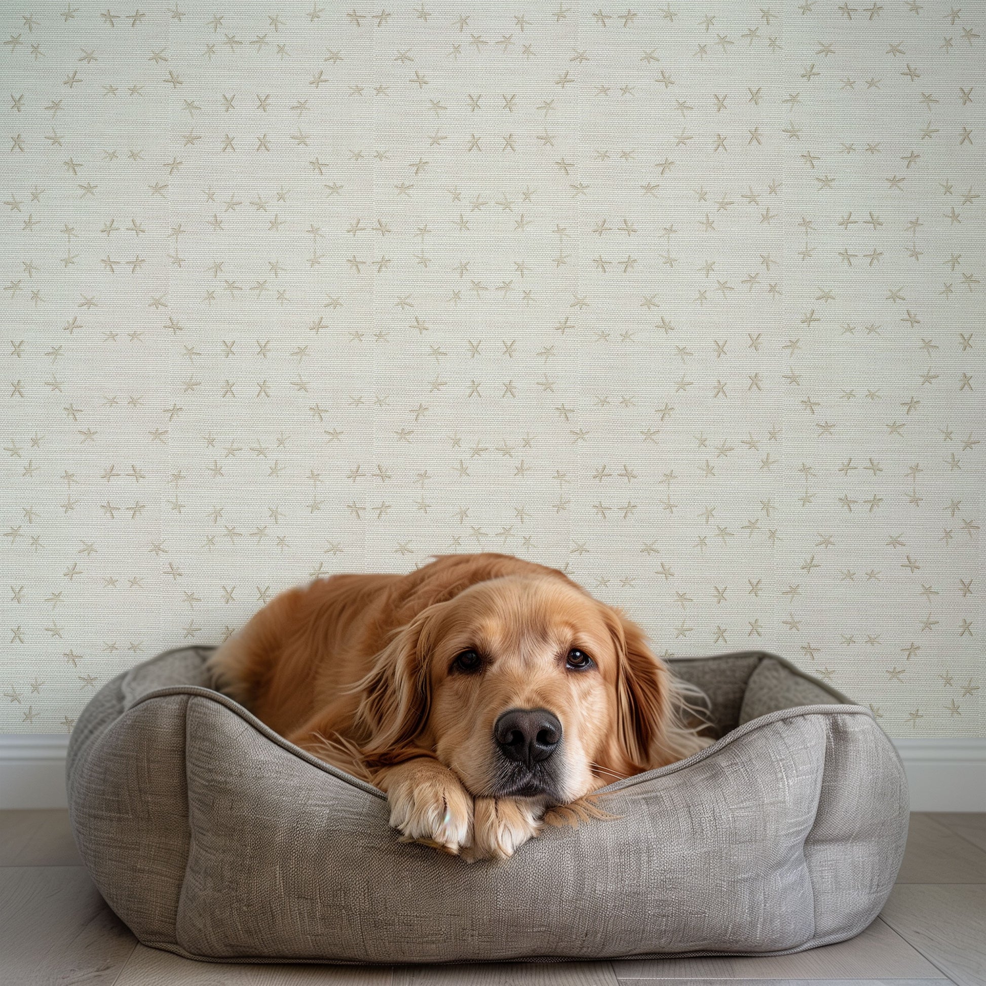 Classically playful, these gouache painted seastars form a subtle ikat pattern as they dance across the wall.